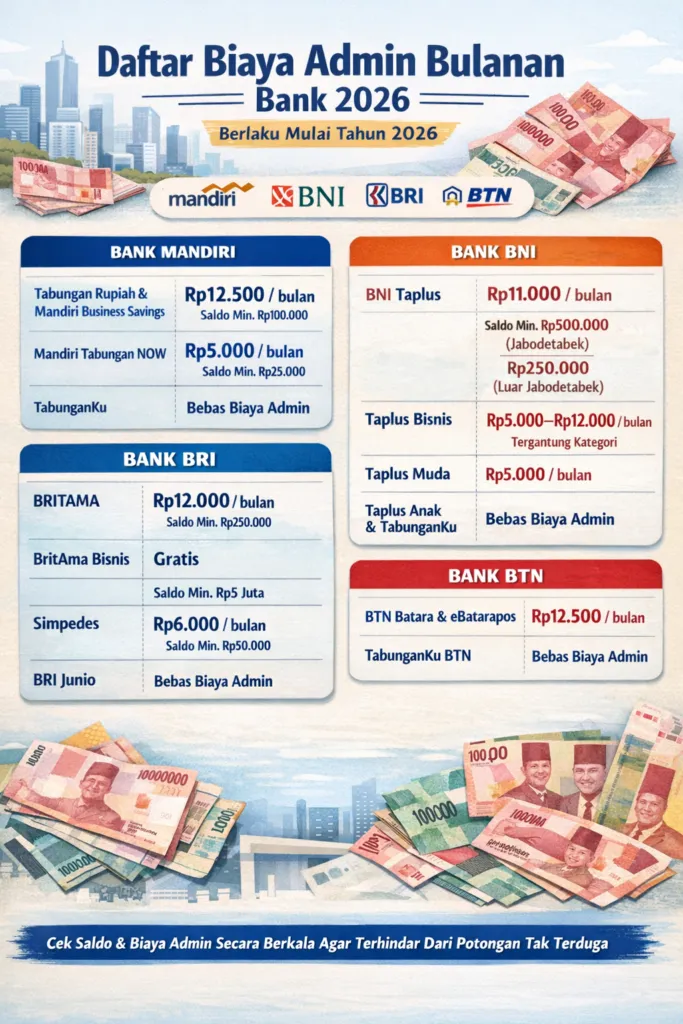 Berikut rincian terbaru biaya admin dari empat bank besar di Indonesia: